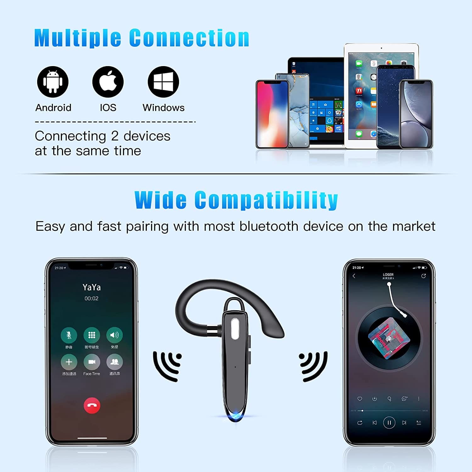 - Top Sound Quality and HD Hands-Free: The Bluetooth earpiece for a cell phone adopts Bluetooth 5.1 chip technology, ultra-low latency, and super fast transmission speed, which provides more clear sound and a stable connection, so you can hear crystal clear calls. You can enjoy music in Hi-Fi stereo sound quality.