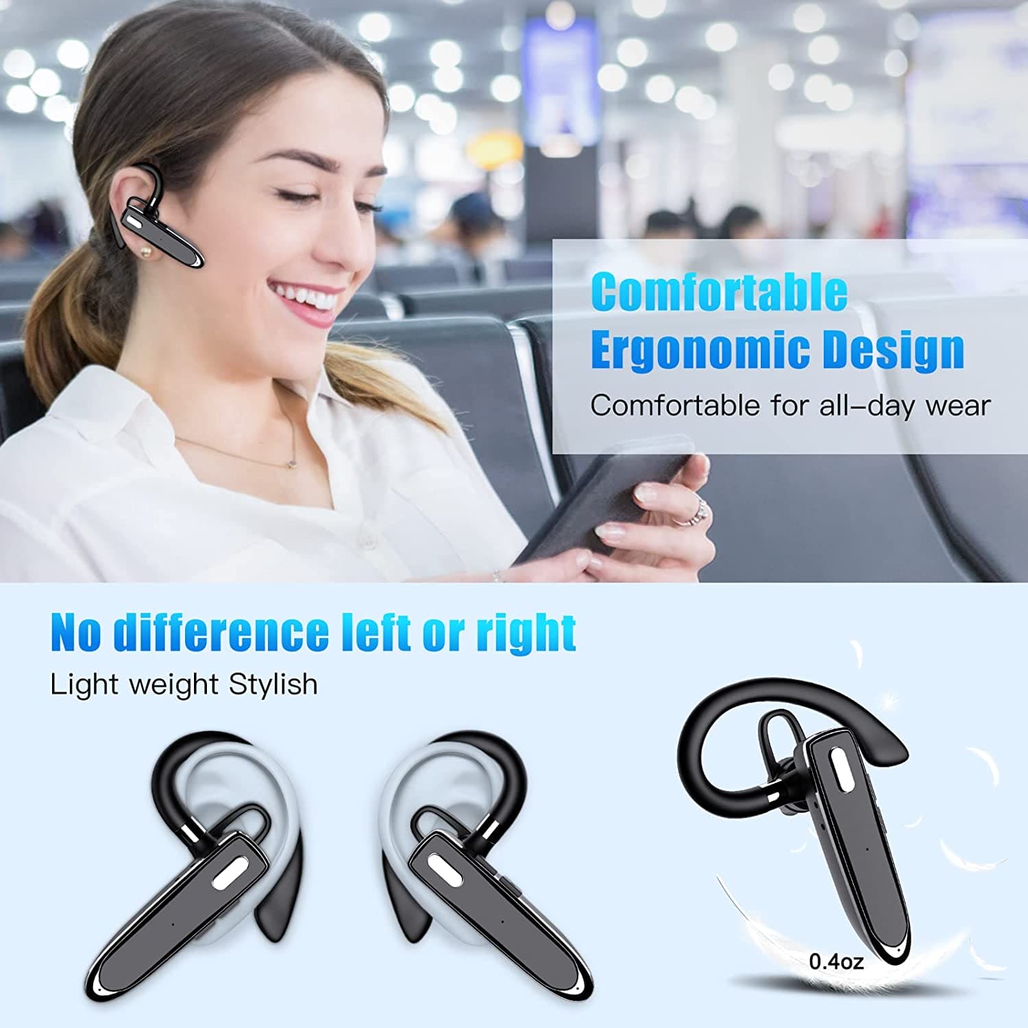 - Comfortable Wearing & IPX7 Waterproof: Newly designed ear cap can fit in the left/right ear more comfortably. A flexible ear hook can rotate 180° vertically and 360° horizontally for a comfortable fit. This wireless headset is lightweight and comfortable enough to be worn for hours.
